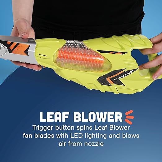 • INTERACTIVE SOUND EFFECTS: Reactive buttons bring realism to playtime with a toy leaf blower that blows air, a rotating weed whacker blade, a moveable saw, and other toy tools with accompanying sounds
