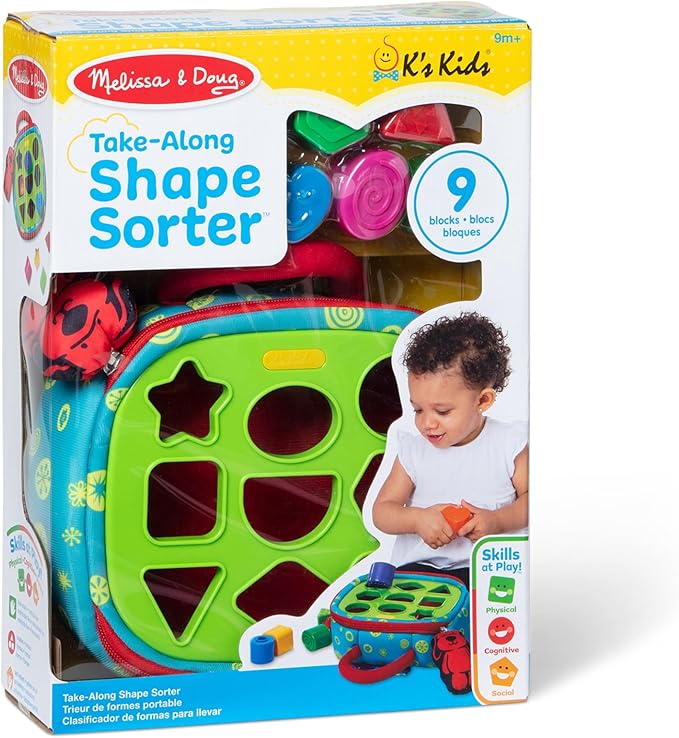 Melissa & Doug K's Kids Take-Along Shape Sorter Baby Toy with 2-Sided Activity Bag and 9 Textured Shape Blocks