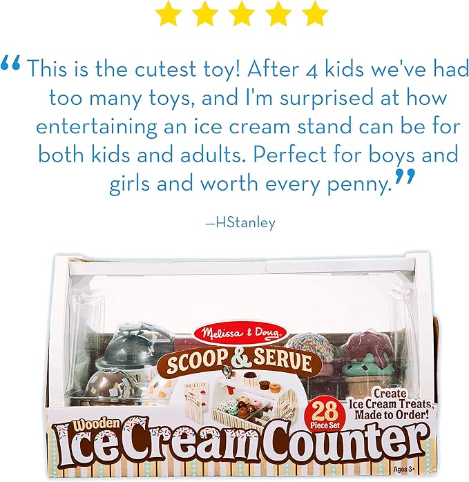 Melissa & Doug Wooden Scoop and Serve Ice Cream Counter With Play Food and Accessories (28 Pcs) Pretend Food, Ice Cream Toys, For Kids Ages 3+