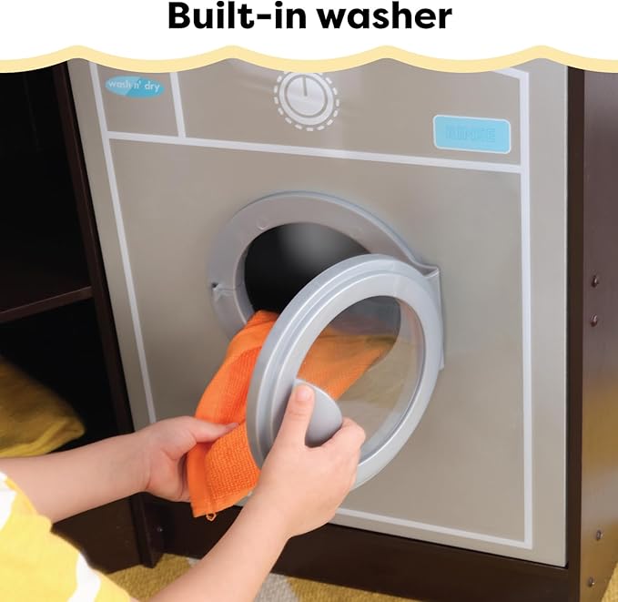 • LAUNDRY TIME: Built-in washer with open and close inset circle window door adds cleaning to the kitchen area.