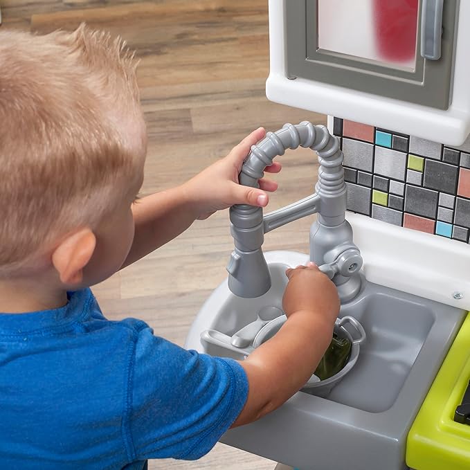 Step2 Contemporary Chef Kids Kitchen Playset, Indoor/Outdoor Kitchenette, Interactive Play with Lights and Sounds, Made of Durable Plastic, Includes 25 Piece Toy Accessories, For Toddlers 2+ Years Old