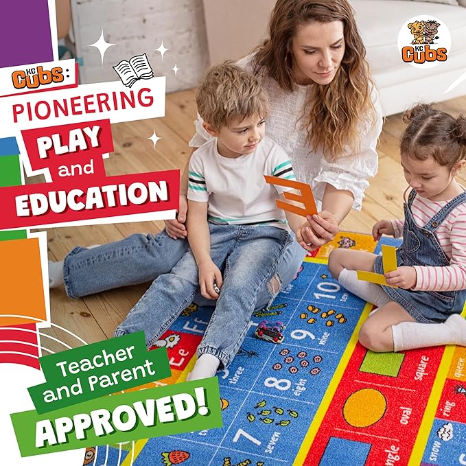 KC CUBS ABC Alphabet, Numbers and Shapes Educational Learning & Fun Game Play Area Non Slip Boy Girl Kids Rug Carpet for Children Bedroom, Toddler Classroom Baby Playroom Mat, Playtime Activity