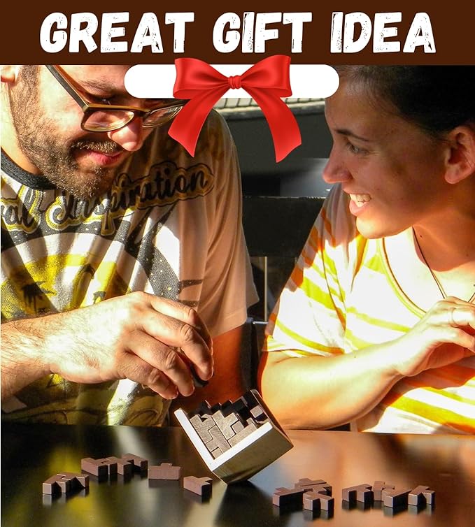 Original 3D Wooden Brain Teaser Puzzle: Engaging 3D Puzzle Box for Kids 8-12 & Adults, Desk Toys Delight, Challenging Games & Wooden Puzzles for Adult Brain Boost (Brown)