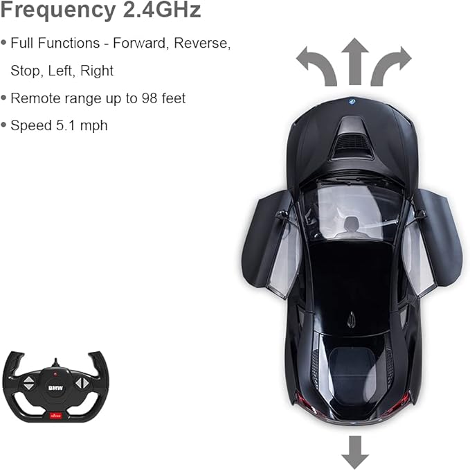 RASTAR Remote Control Car, 1:14 BMW i8 Radio Remote Control Racing RC Toy Car Model Vehicle, Open Doors by RC, MattBlack