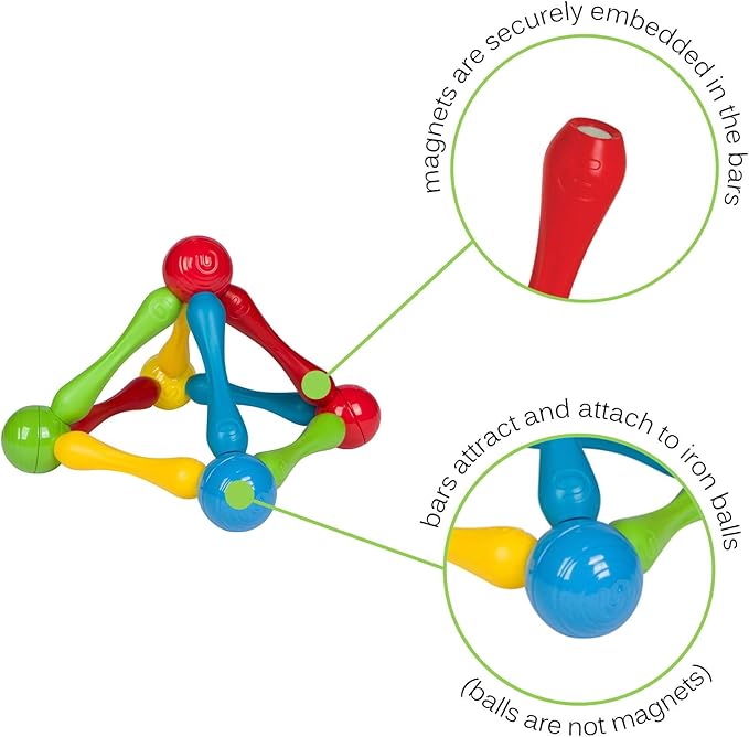 • Magnetic Fun: Explore magnetism with our oversized, safe magnetic bars and lightweight steel balls, designed to captivate young minds