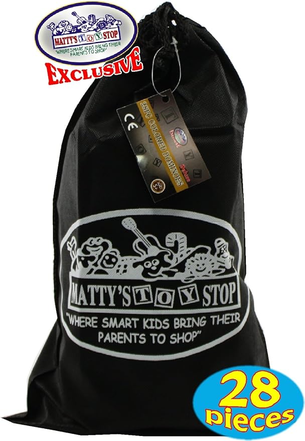 • Matty's Toy Stop Deluxe Giant Wooden Dominoes Double Six (5") Color Dot, 28 Piece Set with Storage Bag!