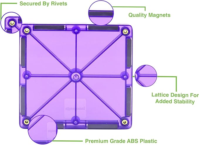 • &#9989 UNLEASH YOUR CHILD’S IMAGINATION! Extra Powerful Translucent Magnetic Tile Set 110 Pieces includes 4 Stabilizing Large Squares, 2 Car Base, 32 Squares, 14 Square Windows, 10 Rectangles, 18 Equilateral Triangles, 12 Right Angle Triangles, 8 Isosceles Triangles, and 10 Colorful Snap-ons and a storage bag for 3 Years and Up