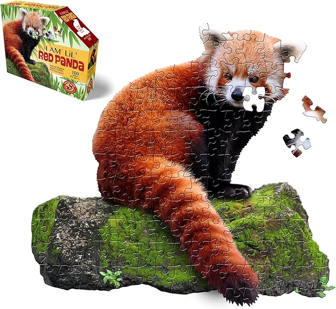 • Madd Capp LiL' RED PANDA 100 Piece Jigsaw Puzzle For Ages 5 And Up - 4005 - Unique Animal-Shaped Poster-sized when completed, Puzzle Pieces Are Oversized For Easy Handling, Includes Educational Madd Capp Fun Facts