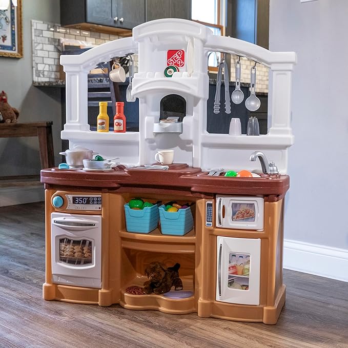 Step2 Fun with Friends Kids Kitchen Playset, Indoor/Outdoor Kitchenette, Interactive Play with Lights and Sounds, Durable Plastic, Includes 25 Piece Toy Accessories, Toddlers 2+ Years Old, Tan
