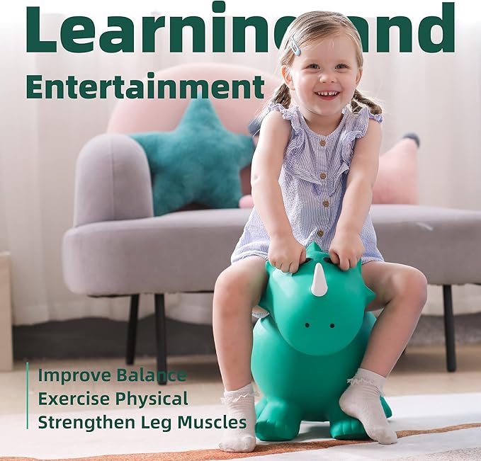 • 【Original and Cute Design】Featuring a popular dinosaur shape, this little blue dino hopper is perfect for kids, just ride on it and enjoy pretend-play while also burning off extra energy through exercise, Supervise your baby while playing if your little one is under 2 years old.