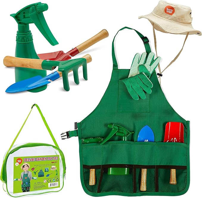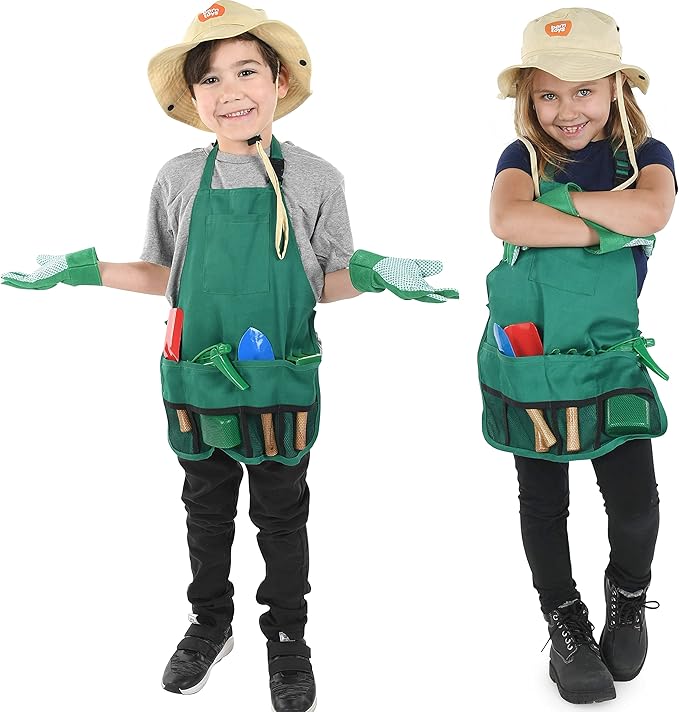 • ๐ŸŒพ IDEAL GIFT: These kids garden tools are perfect for a kid's social development while learning about nature, and learning how to grow plants, fruits & vegetables. Teach them how to dig and plant with our child-friendly gardening kit for kids while using our childrens gardening gloves and kids apron to ensure an enjoyable yet safe planting experience