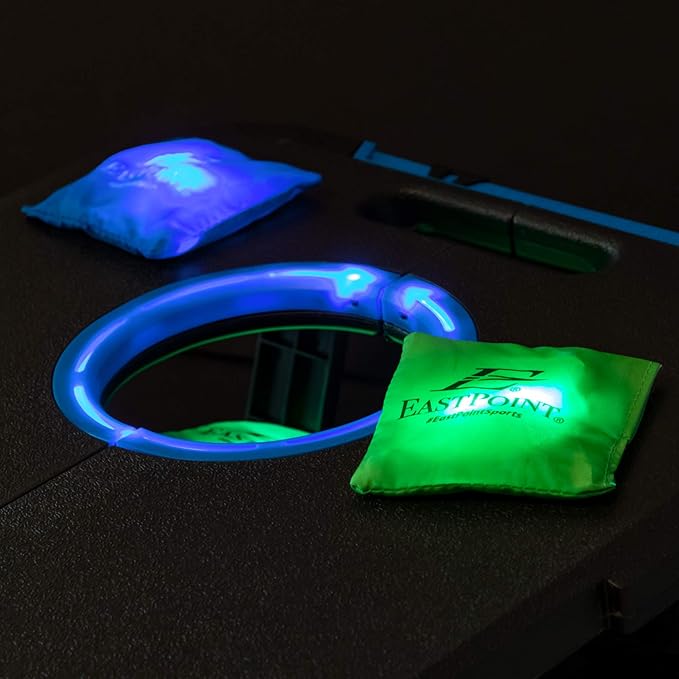 • Play a cornhole game any time of the day or night with the EastPoint Sports Light-Up Bean Bag Toss. Team up or go head-to-head in friendly nighttime outdoor competition.