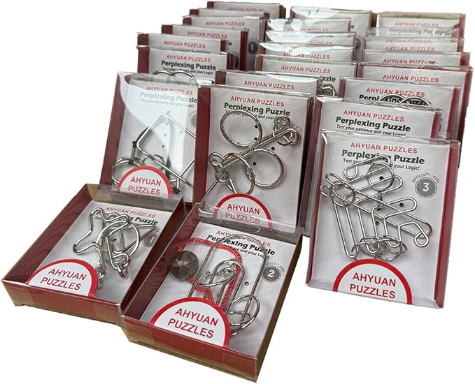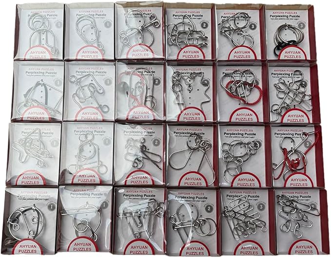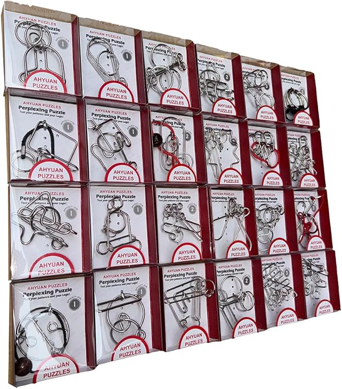Assorted Metal Puzzle Stress Relief Sensory Toys Large 24 Pack IQ Wire Metal Puzzles with Paper Box Gift Package Great Educational Puzzle Games Toys for Kids and Adults by AHYUAN
