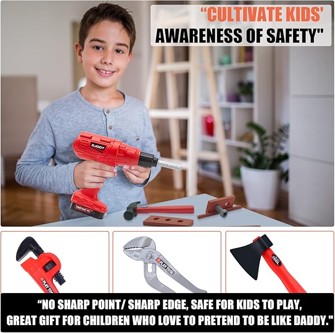 • โš™๏ธใ€Safe & Durableใ€‘: This toddler tools set is made of high quality ABS plastic, safe and environmentally friendly. All construction toys are carefully designed, perfect size, rounded edges, smooth surface, suitable for children to use. This toy tools will bring hours of fun to children!