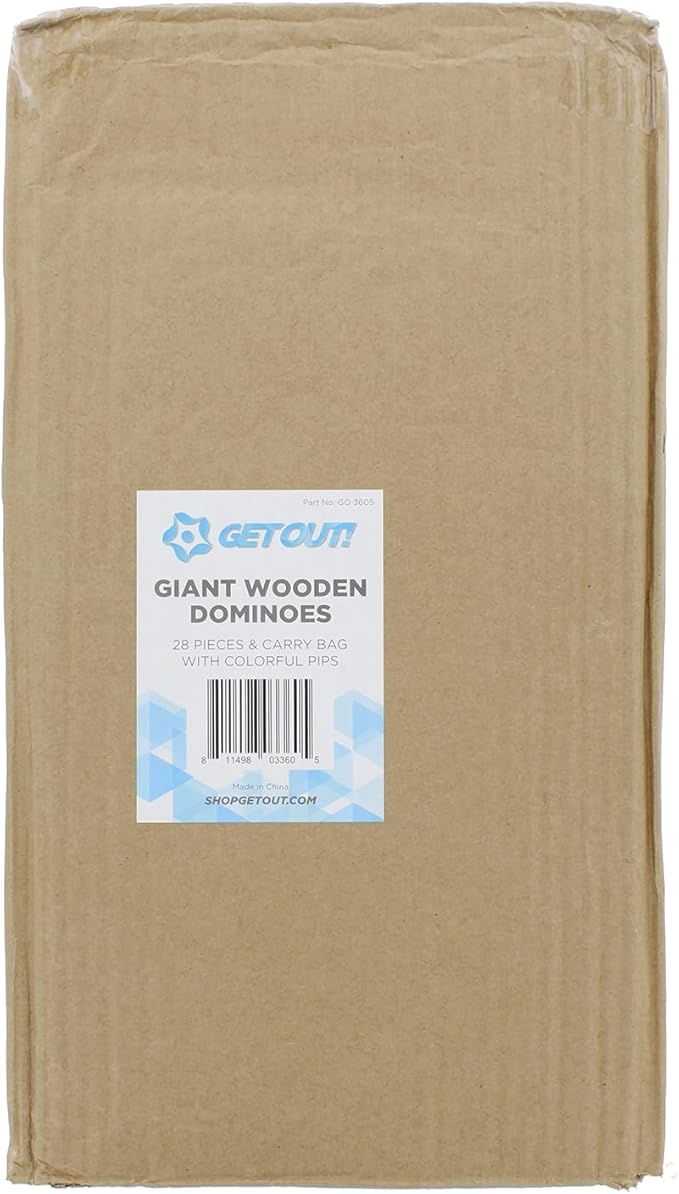Get Out! Giant Wooden Dominoes 28-Piece Set with Bag – Jumbo Natural Wood & Colored Numbers – Kids Adults Outdoor Games