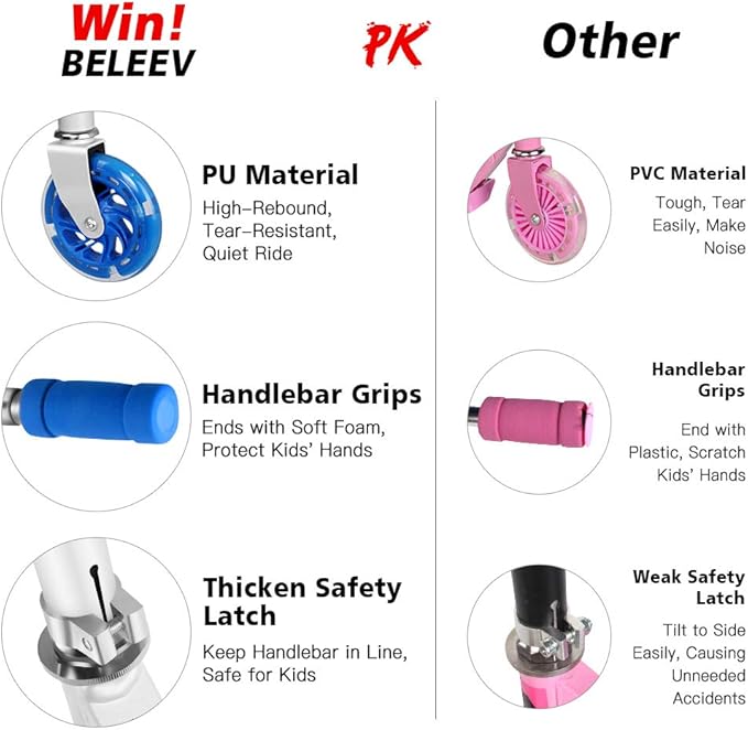 - Light up Your Ride: The kids scooter features 2 LED flashing light up wheels, no batteries needed. Lights get brighter with the faster your kids go with our Magnetic Core Wheels. You'll love this special feature, making your scooter unique!