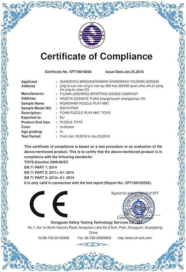 • SAFE FOAM MAT -- BPA Free, Phthalate Free, Lead Free. MQIAOHAM Play Mat is made from soft, safe, durable foam. It's Non-Toxic and Meet the US and Europe regulated safety standards.