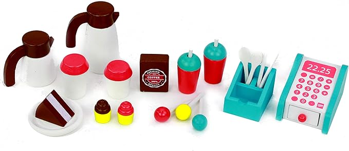 • FULL CAFÉ PLAYSET WITH MINIATURE FOOD ACCESSORIES: This 18 inch doll furniture set includes a food cart, table, menu board, and miniature food items, giving kids everything needed to set up a stylish café scene for endless pretend play adventures.