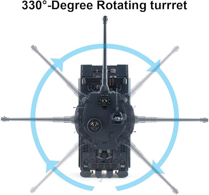 • Fire with realistic recoil action, drives on two treads (not wheels underneath), launch infrared ray "cannon", 330-degree rotating turret left and right,move forward and backward,360-degree rotation left and right,with realistic sounds and light, and more.