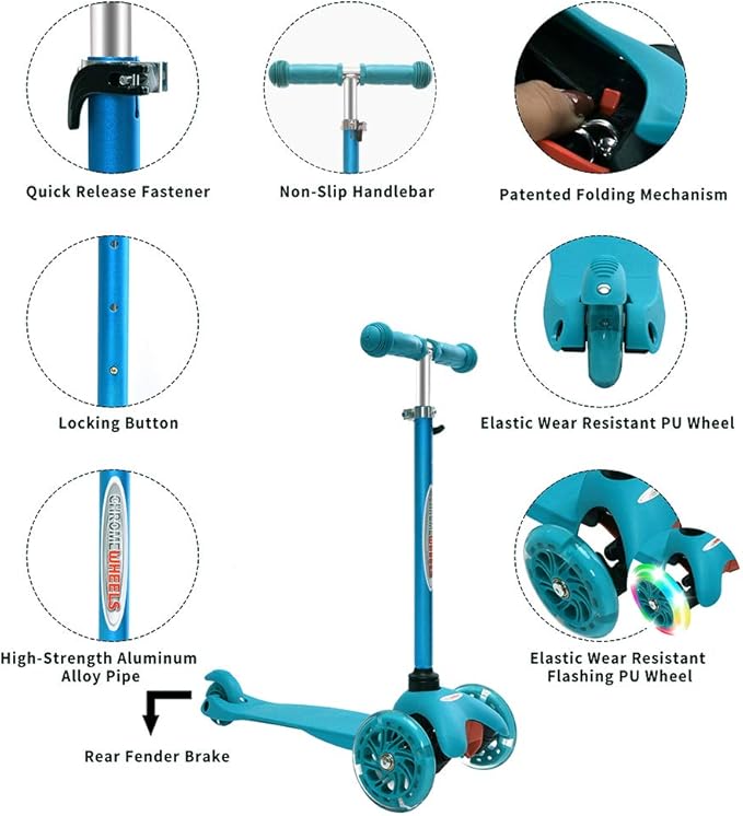 - Stable 3 Wheels Design: 3-Wheel design gives this Kick Scooter more stability and safety, children can easily keep balance on Scooter and start scooting, easy for Kids of Any Skill Level.