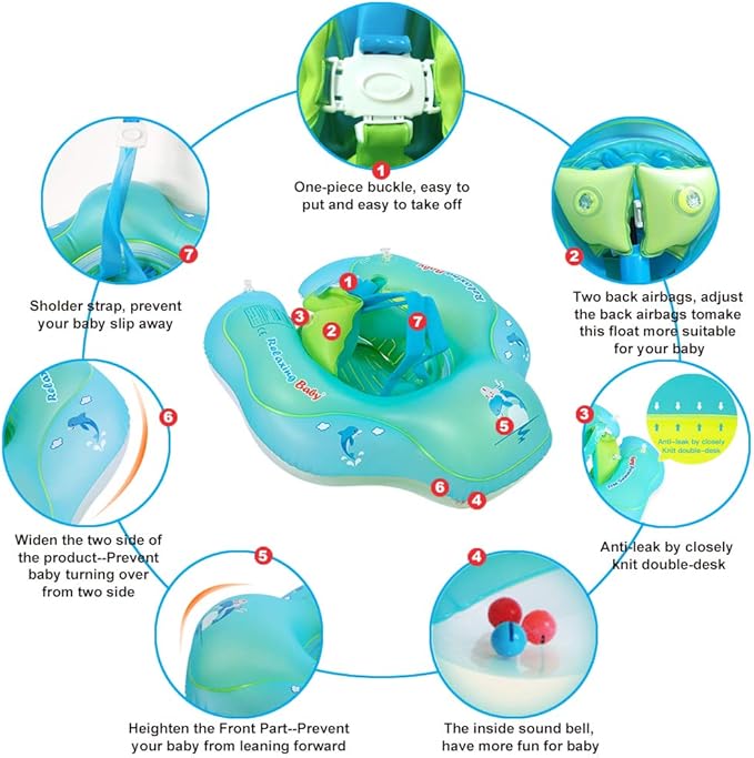 - 【Great Design】This baby tube equipped with comfort and safety design. A pair of high-quality shoulder covers, a safety crotch support, and a follower like a balloon for this swim trainer strengthen the protection of your baby and bring your baby a pleasant swimming time.