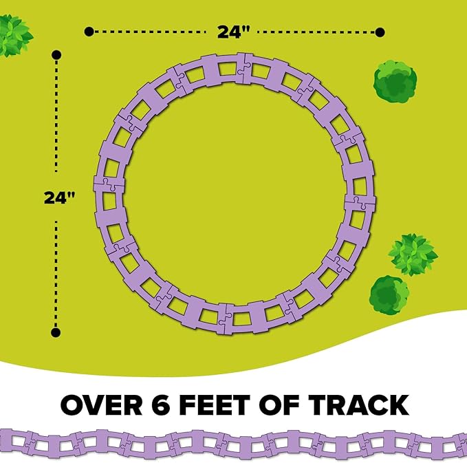 • Motor Skills - Exercise motor skills while constructing over 12 ft of train tracks with the large train set. This battery operated train set is an exciting & motivating kids train set with tracks. A perfect hands on construction toy train for kids.