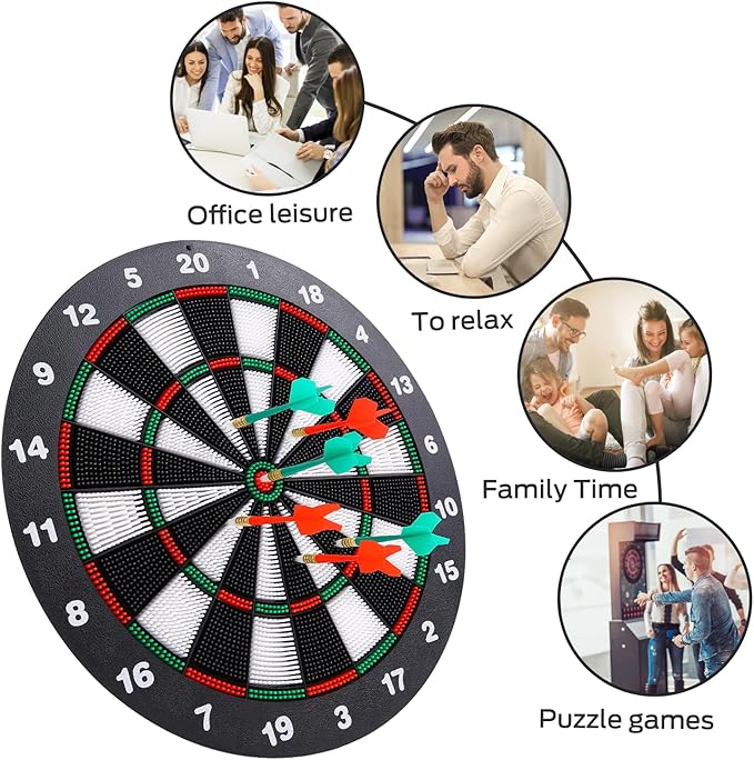 • Full-Sized Dart Board: The sturdy16-inch dart board is made of high-quality material, has strong resilience and easy to grip the darts, provides more fun with more fellows.