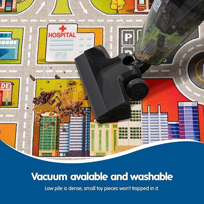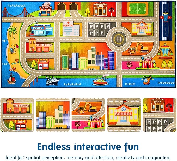 Booooom Jackson Kids Car Rug,Car Mat for Kids Toy Cars,Road Carpet Playmat Rug,Buildings Parking Helipad Printed on,Non-Slip Play Race Track Carpet for Play Room Bedroom