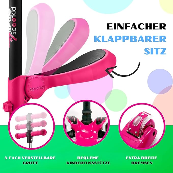 - SIT-OR-STAND DESIGN: Our toddler scooter features a removable flip-out seat with a 45lb capacity, offering comfortable cruising options. It ensures a smooth transition as they grow, easily detachable for confident standing.