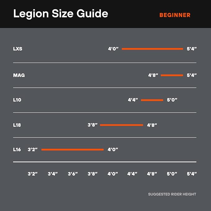 • Legion L10 is a great first BMX bikes for beginners with standard 20 Inch wheels, the recommended rider's height is 4'4" to 5'0"