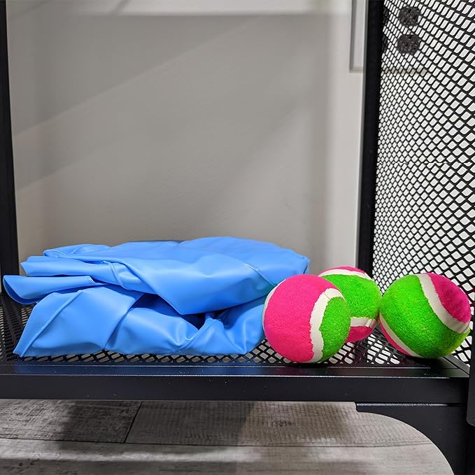 • PACKAGE INCLUDES: (1) 20” inflatable dart ball board with 17 sewn-in self-stick targets and hanging strap, (3) tennis ball-sized self-stick dart balls with extra fuzz for protection.