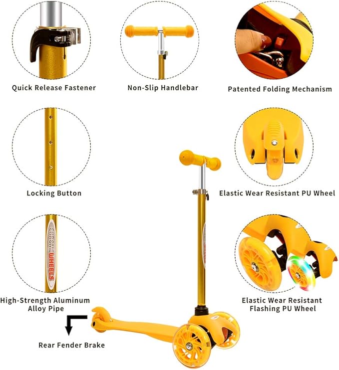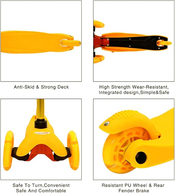 - Stable 3 Wheels Design: 3-Wheel design gives this Kick Scooter more stability and safety, children can easily keep balance on Scooter and start scooting, easy for Kids of Any Skill Level.