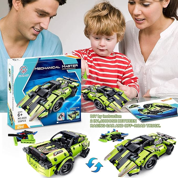 - 🎮️Flexible Remote Control & Racing Car - 335 PCS of STEM toys could be built into a Race Car Vehicle Creation & Off Road Truck that will challenge your kids and will keep them occupied for hours! This construction building blocks toy car series with reliable remote control that makes it easier to move forward and backward, turn left or right on smooth & flat surfaces indoors or outdoors. You can also create two car models to race.