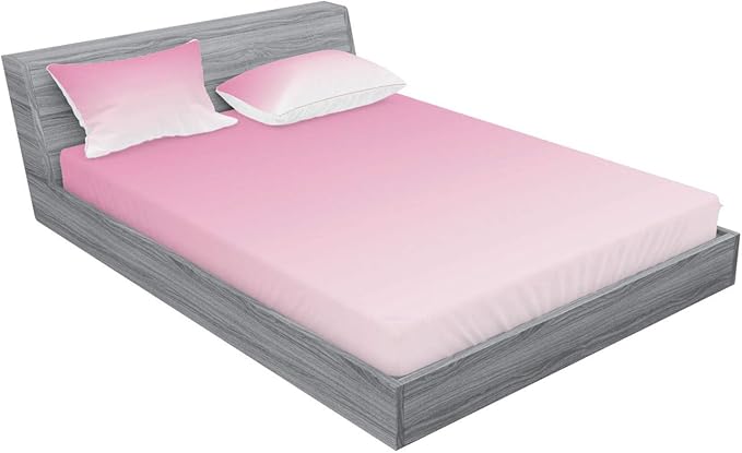 Ambesonne Ombre Fitted Sheet & Pillow Sham Set, Dreamy Pale Pink Waterfall Cotton Candy Inspired Modern Digital Print Girls Artwork, Decorative Printed 3 Piece Bedding Decor Set, Full, Pale Pink