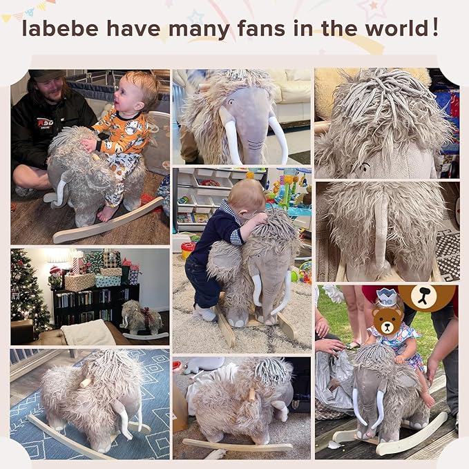 - Classic Rocking Mammoth: Unique mammoth animal design - a cute baby rocking toy for kids. The mammoth rocker from the glacier century, he crossed the desert, across the snowy mountains, looking for his little friend-labebe dragon rocking horse.The structure and rocking horse appearance are all originally designed by our French team . It is specially cute and sturdy. You will only find those ride on mammoth, plush rocking horse at Labebe store and your kids will be extremely surprised and happy to have such a wooden rocking horse for Birthday gift or Christmas gift.