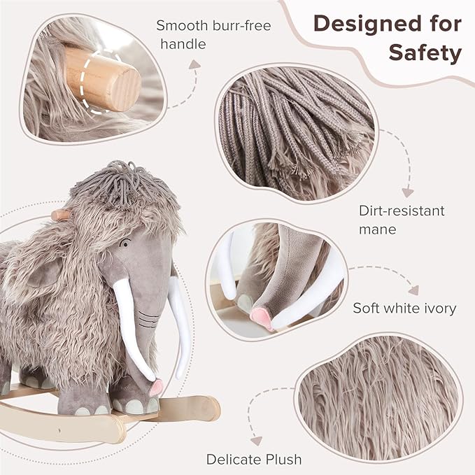 labebe - Plush Rocking Horse, Mammoth Rocker, Stuffed Rocker Toy for Child 1-3 Year Old, Kid Ride On Toy Wooden, Rocking Animal for Infant/Toddler Girl&Boy, Nursery Birthday Gift