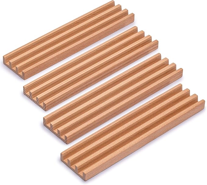 • 4 QUALITY WOODEN RACKS: Each tray holds up to 44 tiles and has four rows for ample space to organize your tiles; Racks measure 10 x 2.4 x 0.7 inch (25 x 6 x 1.7 centimeters)