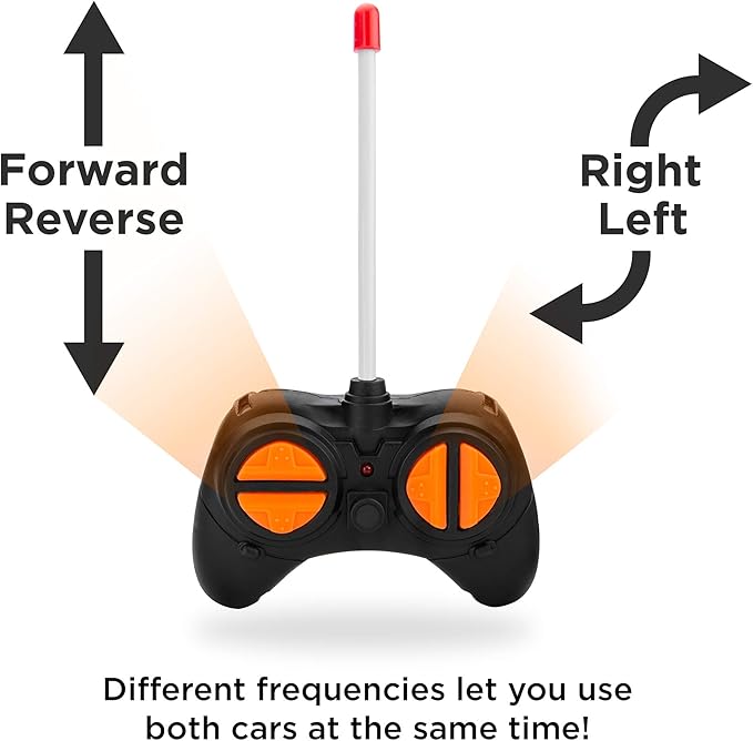 • TWO 1/43 SCALE RC CARS: Battery-operated set includes 2 mini monster trucks and remote controls with frequencies of 27MHz and 49MHz, allowing them to be used simultaneously (batteries not included)