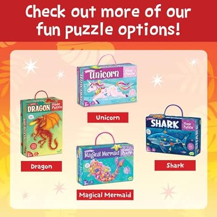 • UNIQUE-DESIGN: This fierce dinosaur floor puzzle is made of thick and sturdy pieces with shiny foil accents. The puzzle pieces are uniquely shaped for curious minds and include a pterodactyl, a stegosaurus and other fun dino shapes.