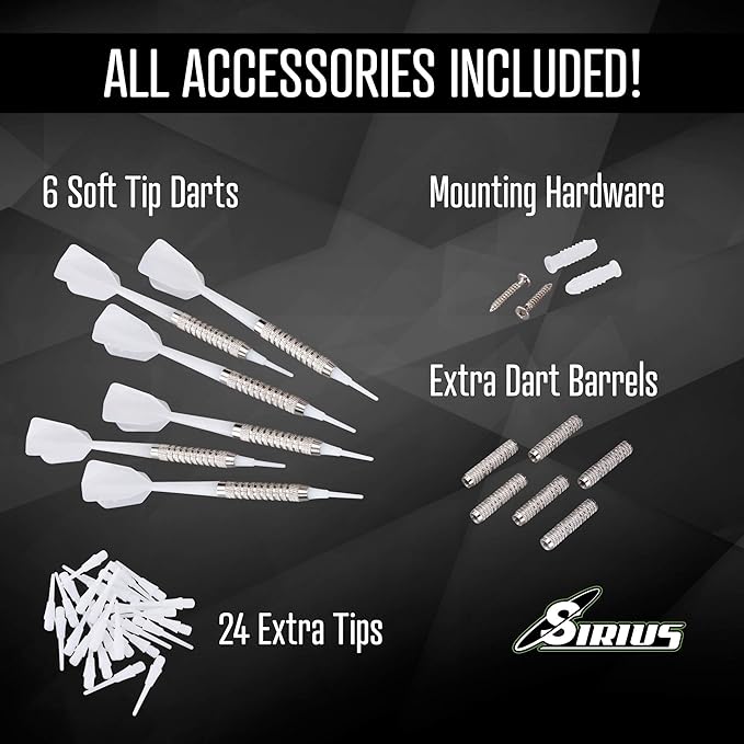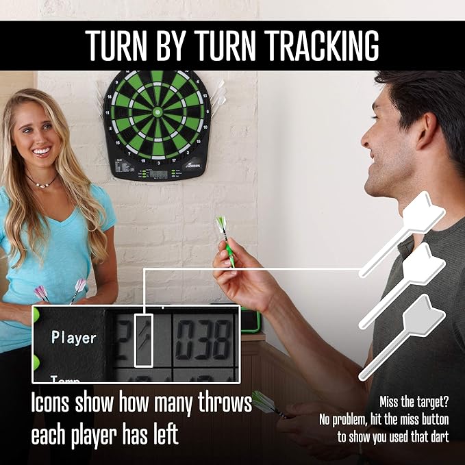 • Top Quality Segments - Compact 13.5” electronic dart board target area is durable with precision engineered concave segment holes that lock in your shots