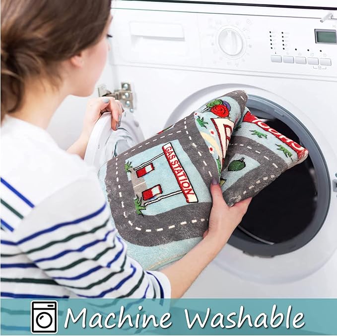 • Easy to Clean: Most of the time you just shake to clean.For extra cleaning, road rugs are machine washable in cold water,which is a great help for every parent, dryer or lay flat to dry is fine