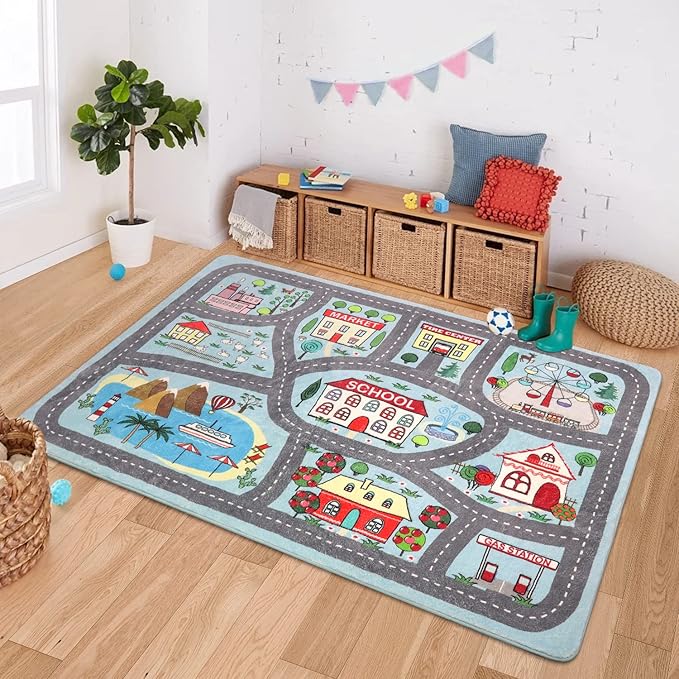 • Printed Road Design: Let the large car rug spark your son's and daugther's imagination, race on track to arrive every location with car toys, create their own stories, have fun parent-child time