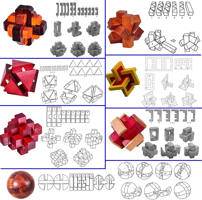 • Our burr puzzles are specially designed to disassemble and reassemble, wooden puzzles are classic and popular puzzle game toys, can train and develop your logic & improve your IQ, suitable for both young and old