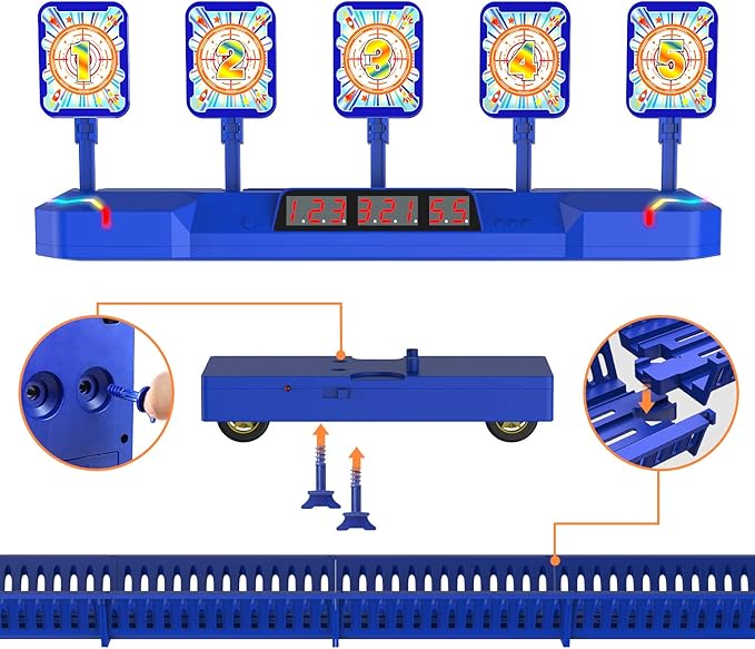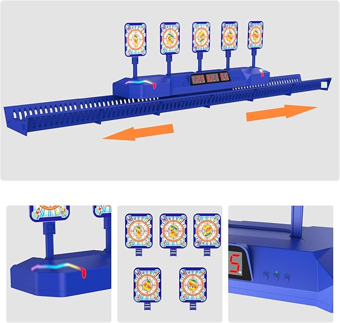 - ๐ Updated Design: The MOVING Shooing Target have 5 targets, which is Design for kids from age 6 - 12 years old. It broken the tradition static model, add the track make it have running model. Add lots of fun for kids shooting games playing.