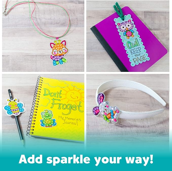 - DIAMOND PAINTING: Create your own diamond art designs using the DIY kit for girls and boys! This craft kit combines two diamond painting activities in one. Add DIY gem art to your water bottles, backpacks, journals, and more with 12 diamond art stickers and display 2 diamond-painted woodland creatures suncatchers