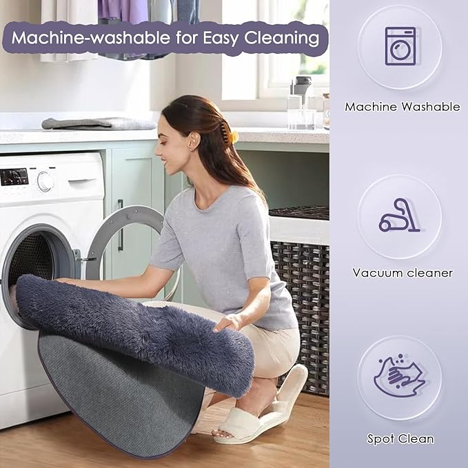 • How to Clean: We suggest you vacuum or wipe it, or hand wash and air dry to make this area rug fluffy and have a long service life. If you are tired of tedious cleaning, this furry rug is Machine Washable to save you time and energy