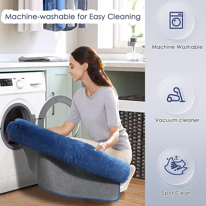 - How to Clean: We suggest you vacuum or wipe it, or hand wash and air dry to make this area rug fluffy and have a long service life. If you are tired of tedious cleaning, this furry rug is machine-washable for easy cleaning to save you time and energy