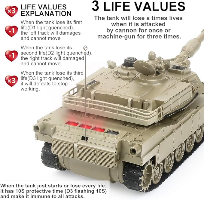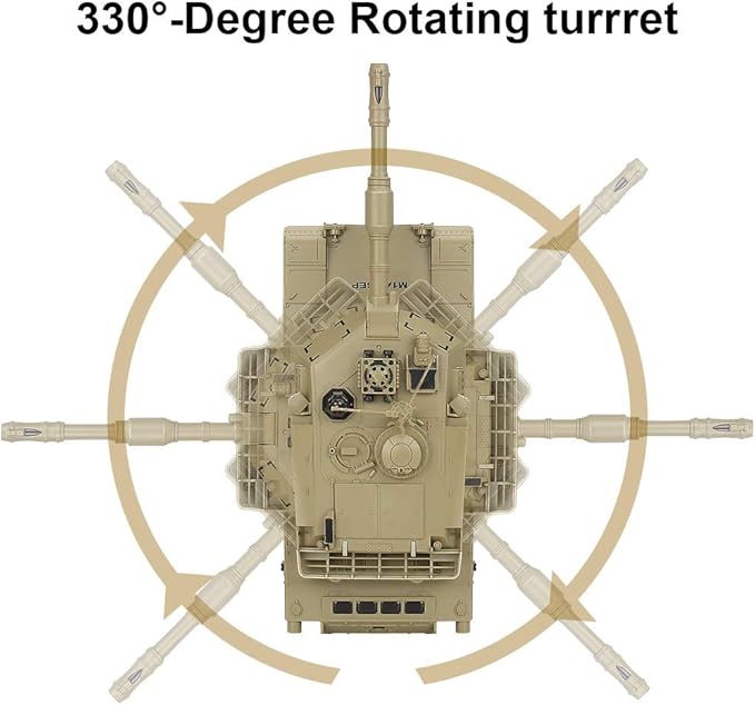 • Realistic Function: Fire with realistic recoil action, drives on two treads (not wheels underneath), launch infrared ray "cannon", 330-degree rotating turret left and right,move forward and backward,360-degree rotation left and right,with realistic sounds and light, and more. Let your boy simulate military exercises and war adventures