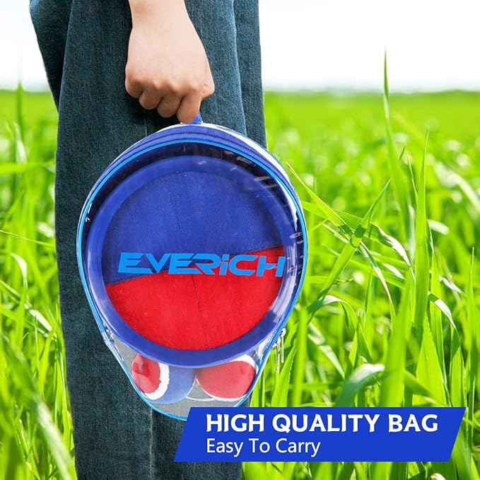 • 【Outdoor/Sand/Backyard Game, Great Gift】The EVERICH catch ball set comes with a transparent zip-up bag for easy carrying and storage. It is a fun game and high-quality sand toy. It is great for boys and girls ages 3-12 as a birthday or Christmas gift, helping them to stay away from screens and form good exercise habits.