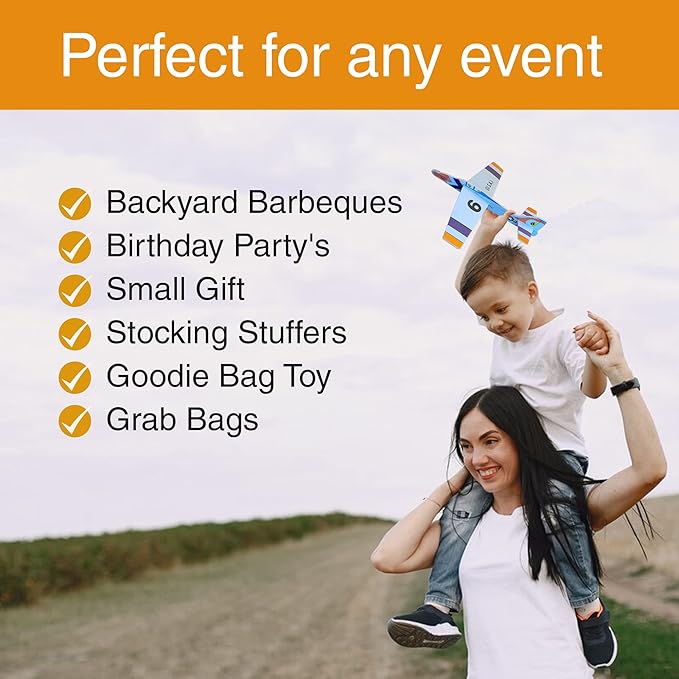 • Play These Games With A Friend - Farthest Throw, Most Accurate Or Longest Flight Time - This Toy Plane Set Is Perfect For Any Event, Backyard Barbeques, Birthday Party's, Small Gift, Stocking Stuffers, Goodie Bag Toy, Grab Bags, And Much More
